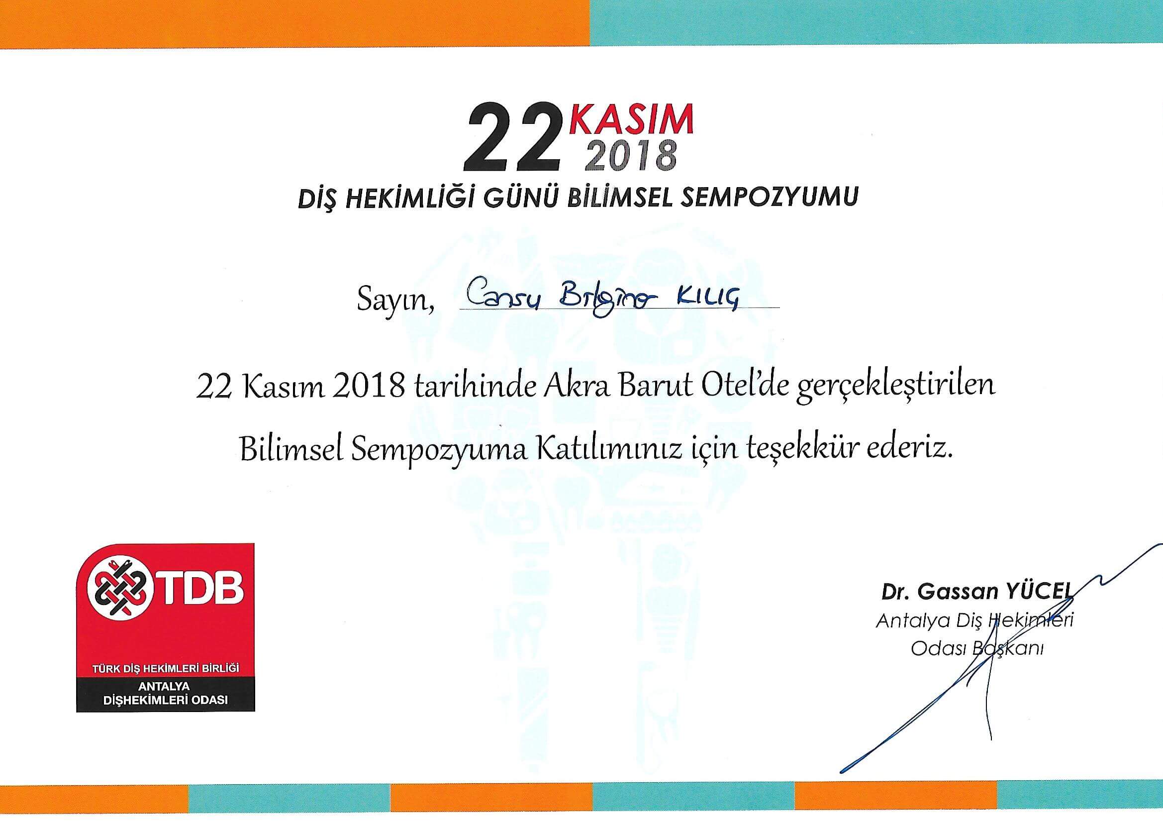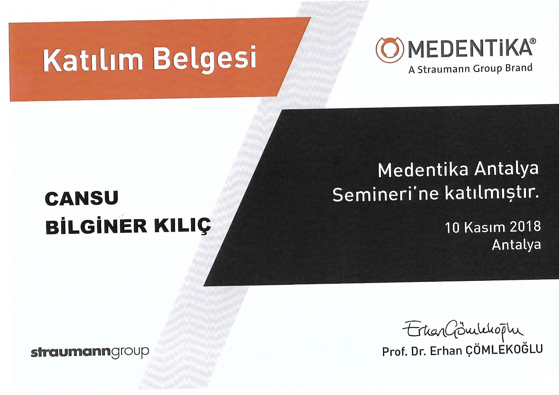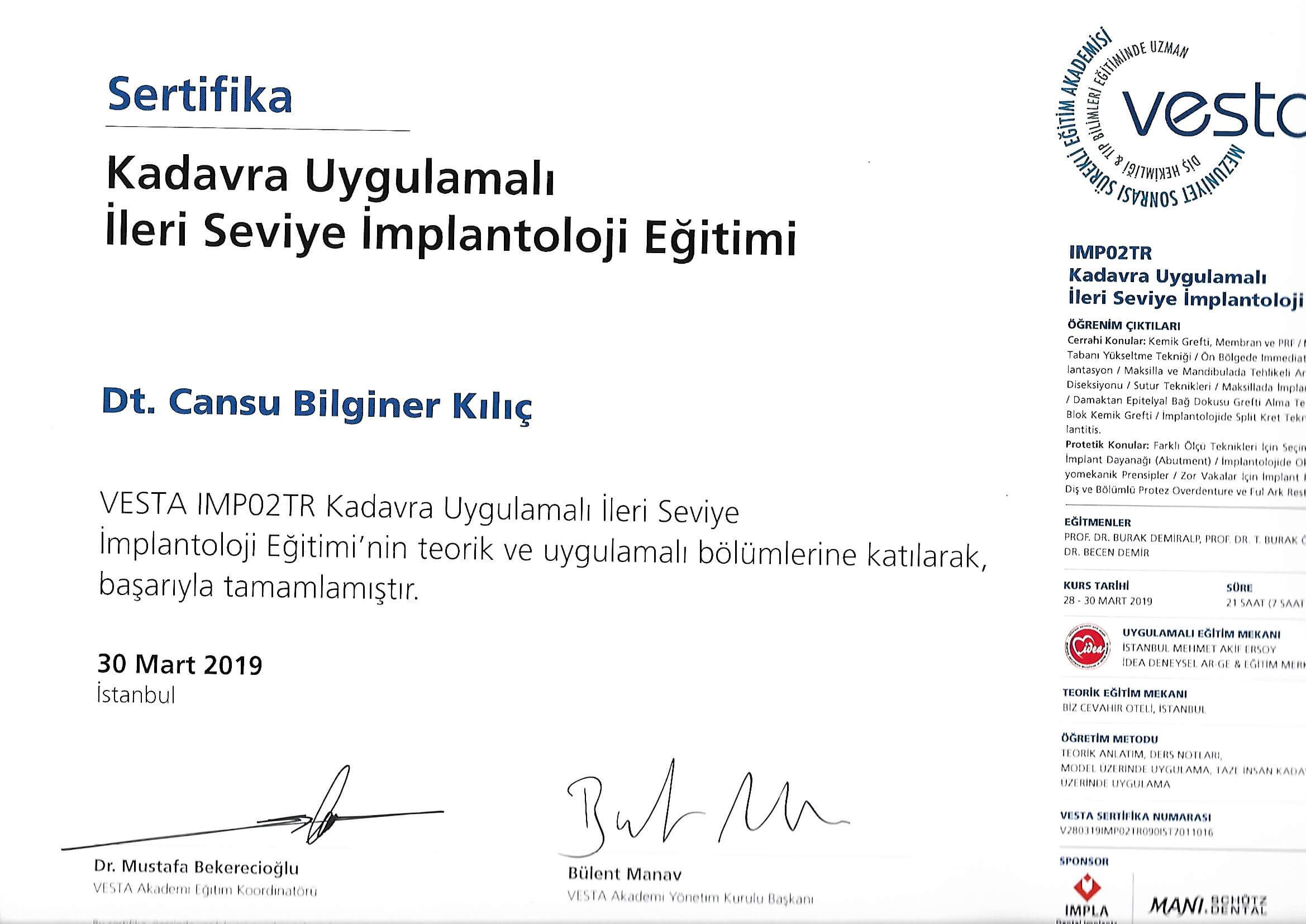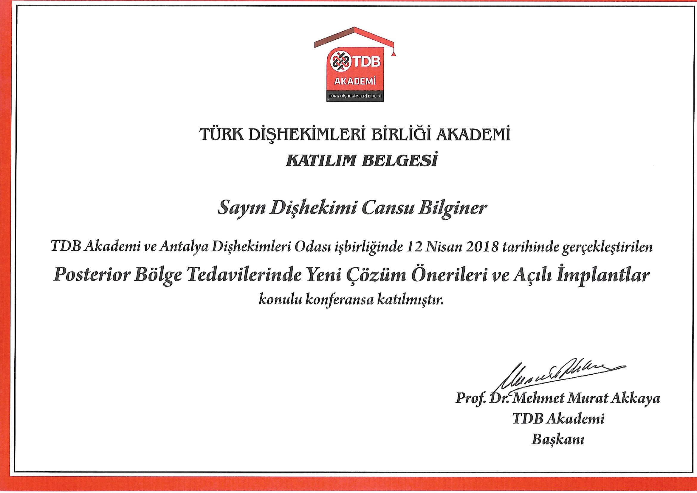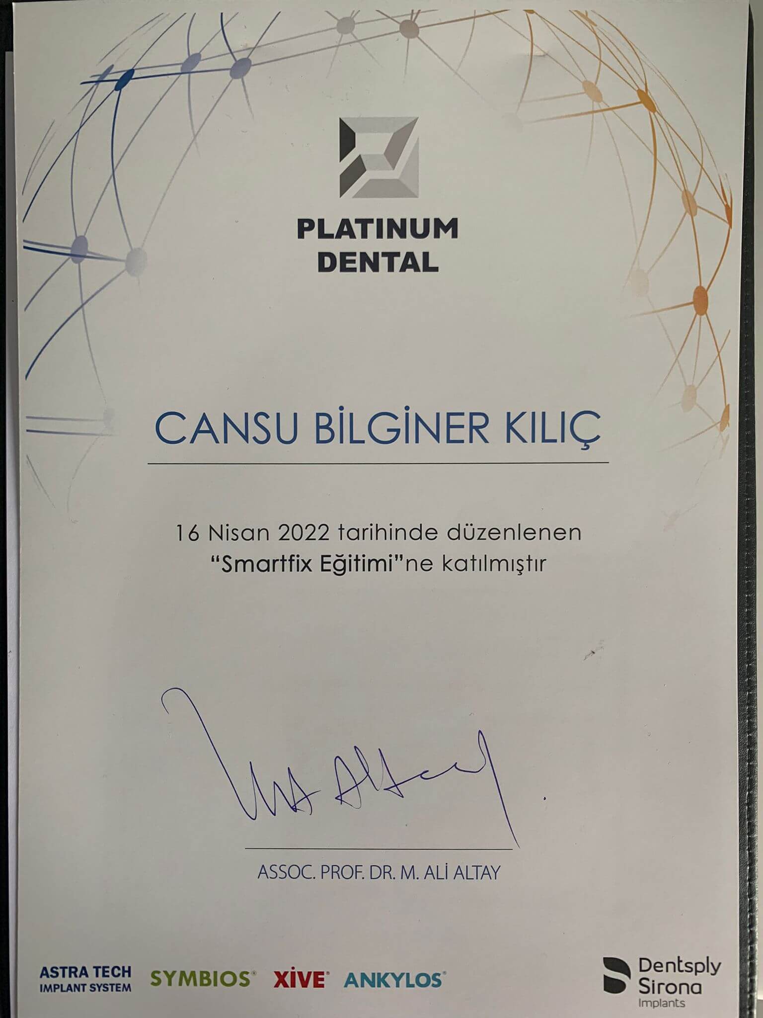 Dr. Cansu Bilginer Kılıç TPİD (Türk Prostodonti ve İmplantoloji Derneği) ve TDB (Türk Diş Hekimleri Birliği) üyesidir.